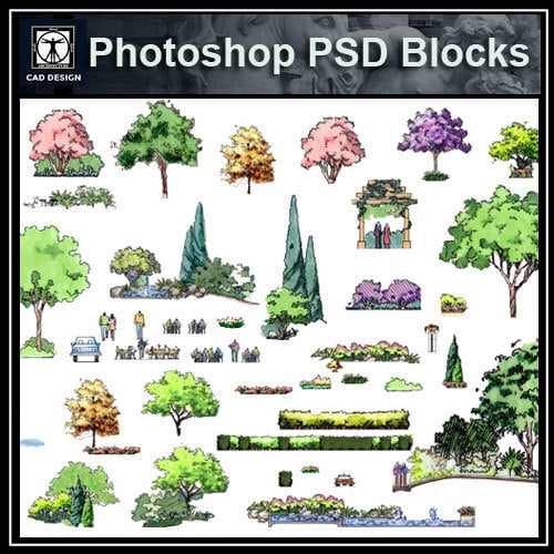In this Photoshop “PSD” blocks bundle, we have presented a collection of furniture,landscape,tree,cars blocks in plan view (and some in elevation view) for architectural plans with Photoshop software.