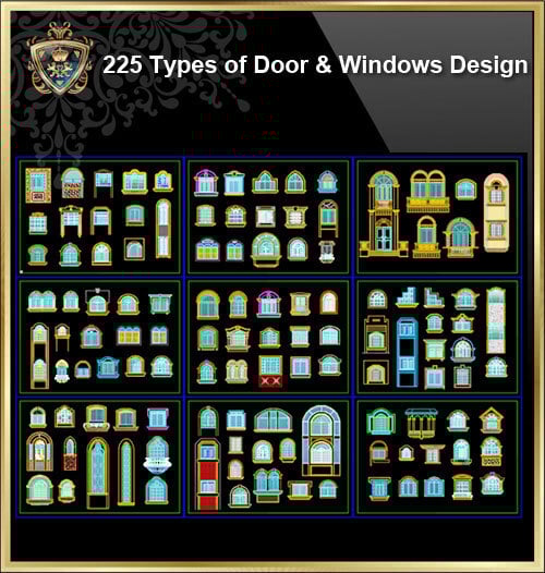 【225 Types of Door & Windows Design CAD Blocks】