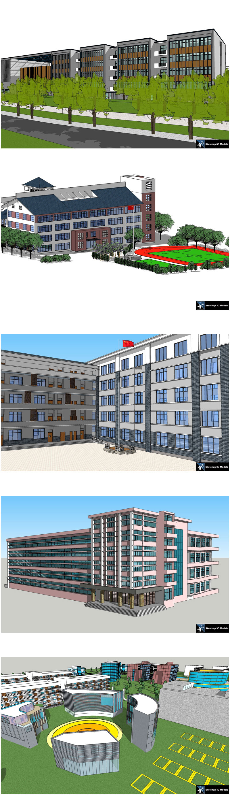 💎【Sketchup Architecture 3D Projects】20 Types of School Design Sketchup 3D Models V1